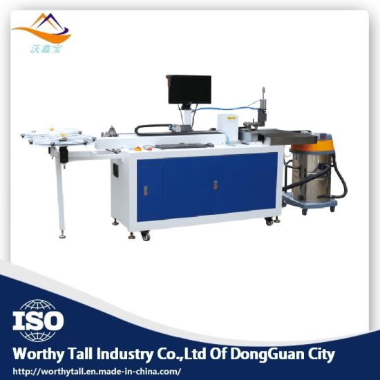 >>> Característica de la máquina Doblado automático, puenteado, corte, labio, brochado con cuchillas de 0,45-3 mm de grosor y 8-60 mm de altura. caracteristicas: Partes del núcleo hechas de: 2 juegos de motor de servidor Pansonic (para alimentación y doblado); 2 juegos de engranajes de motor de dirección (para puentear el corte); 2 sets de motor de servidor Pansonic (para brochado); 1 tornillo de guía HIWIN de alta precisión 1 sets reductor de motor del servidor de Japón Cilindro AirTag de alta calidad Sistema de control de desarrollo propio sujeto a cambios por las necesidades del cliente Sistema de alarma y autoprotección Estable y fácil de operar Cuota de mantenimiento baja >>> Materiales e industrias aplicables. Ampliamente utilizado en flexión de hoja, caja de paquete, etc. >>> Sistema de doblado WT 1.Alimentación ----- utilice el sistema de alimentación de rollo, podría alimentar la regla de acero muy rápido y con precisión